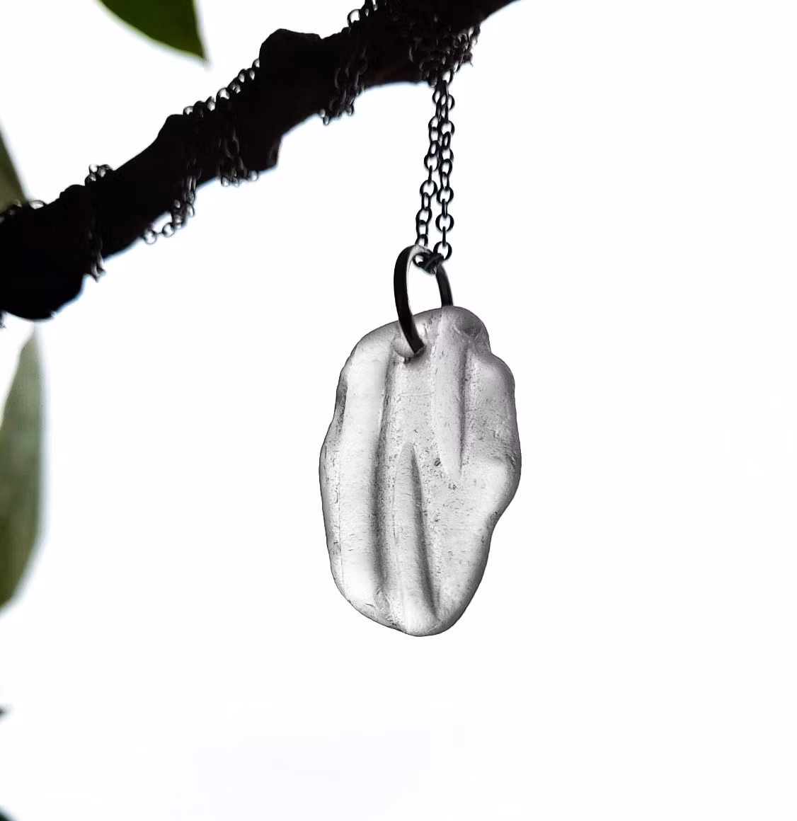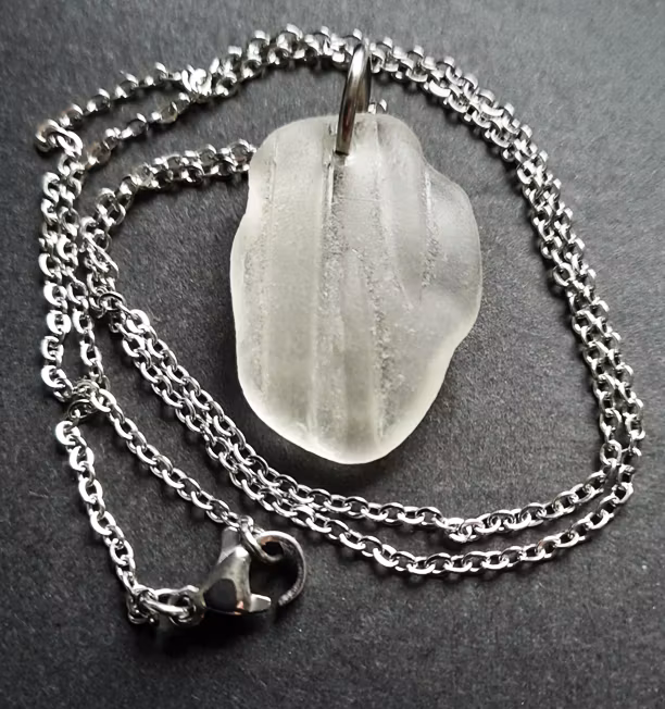 Halsband med vitt, räfflat strandglas och kedja av rostfritt stål.