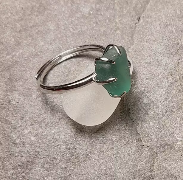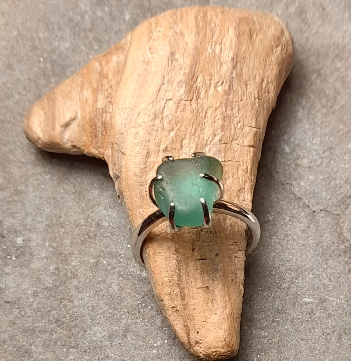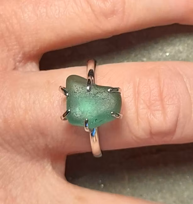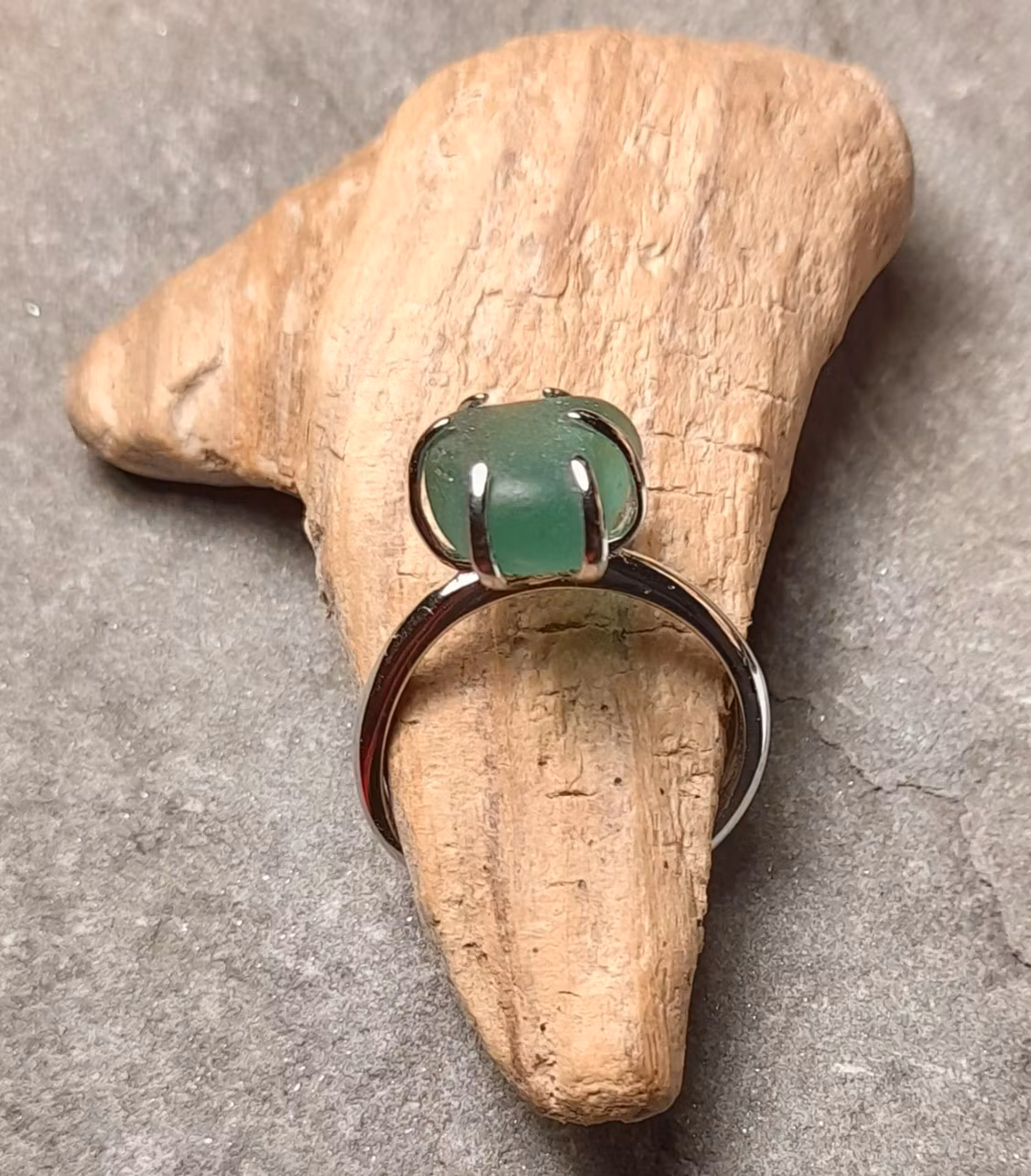 Ring av 925 silver med litet ljusgrönt strandglas.